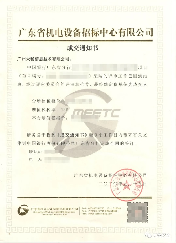 花开初夏,捷报频传,近日,天畅信息成功中标中国银行广东省分行采购项目。本次成功中标,离不开公司各部门同事的全力配合,在此,我们对为该项目中标付出辛勤努力的同事们表示衷心感谢,希望在接下来的工作中,再接再厉,争取更大的成绩。