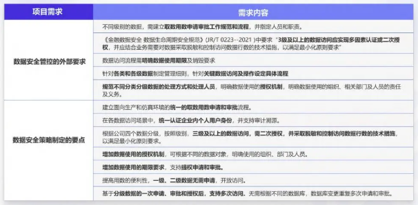 数据访问管理产品系列名称为 “数据执法官”,对应数据访问管理的场景梳理、安全保护和合规证明3个阶段,包含如下6款产品。