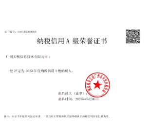 广州天畅信息技术有限公司凭借连续六年的纳税信用A级荣誉,彰显了其诚信经营、稳健发展的卓越实力。也是对其依法纳税、诚信经营的肯定,更是对其积极履行社会责任和经营实力的高度认可。