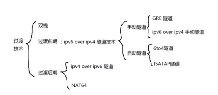 目前IPv6仍处于发展阶段,虽然运营商、互联网公司及高校都在逐步建设,但是互联网基础设施和应用大部分还在使用IPv4。由于IPv4和IPv6本身的不兼容性,为了适应这种情况,把各自的网络孤岛进行连接,出现了几种过渡解决方法,分别是:双栈技术、隧道技术、转换技术。