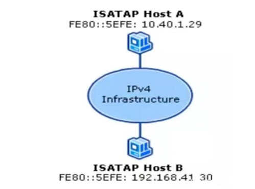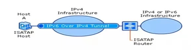 站内自动隧道寻址协议(ISATAP: IntraSite Automatic Tunnel Addressing Protocol) 采用了双栈和隧道技术,能实现主机与主机、主机与路由器之间的通信。ISATAP隧道不仅能实现隧道功能,还可以通过IPv4网络承载IPv6网络的ND协议,从而使跨IPv4网络的设备仍然可以进行IPv6设备的自动配置。