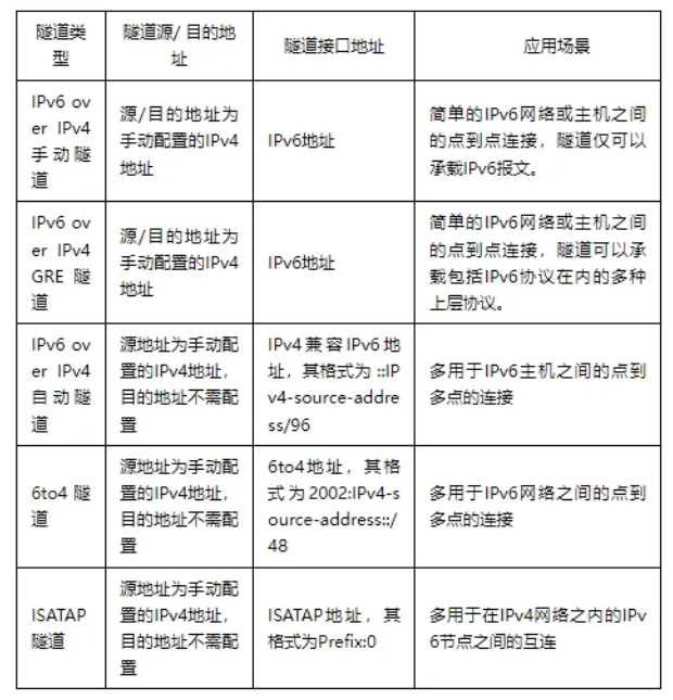 (4)自动隧道包括IPv4兼容IPv6隧道,6to4隧道和ISATAP隧道